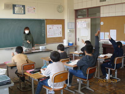 6年生の理科の授業では「火山による大地の変化」について調べたことを発表しました。子どもたちは,火山の噴火による溶岩で島が大きくなった例の発表等を聞き,火山による大地の変化についての理解を深めることができました。