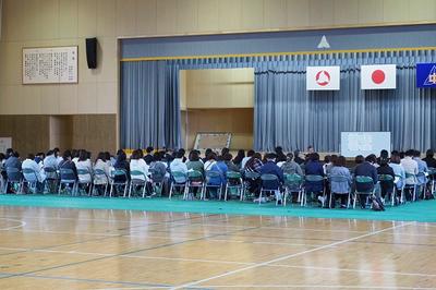 校長先生の話を真剣に聞く生徒、中には涙ぐむ生徒もいました。3年生にとってとても辛い話でした。校長先生もどう伝えるか悩み、時折言葉が詰まりました。その後、教室に戻り、担任の先生から説明を受けました。