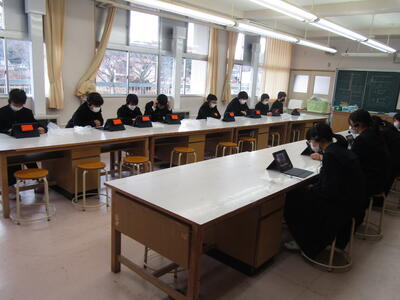 視聴覚室で行われ、今回の受検者9名が挑戦し