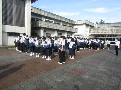 10月21日と22日に行われる「tbcこども音楽コンクール東北大会」に出場する器楽部と特設合唱部の激励に、村長様、教育長様が来校されました。生徒たちは程よい緊張感の中、とても良い表情で素晴らしい演奏を披露することができました。短い時間ではありましたが、コンクール前に発表の機会があったことに感謝いたします。残り2週間、悔いのないよう練習に励み、コンクールを迎えてほしいです。