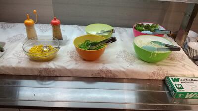 ンジーサラダ、春雨スープ、牛乳、かみかみグ