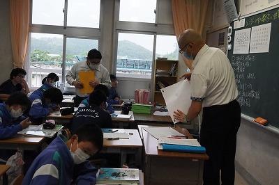 本来であれば、例年、職業体験で自衛隊(西郷:布引山)を訪問し体験活動を行っていたのですが、コロナ禍で中止となり、校内での講義・演習となったものです