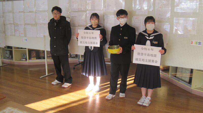 3学期始業式に任命された新生徒会役員の紹介と抱負の発表として給食の時間に放送を行いました。