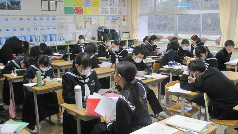 その後、村教育委員会 安田先生による3年3組の道徳の授業を全員で参観しました。