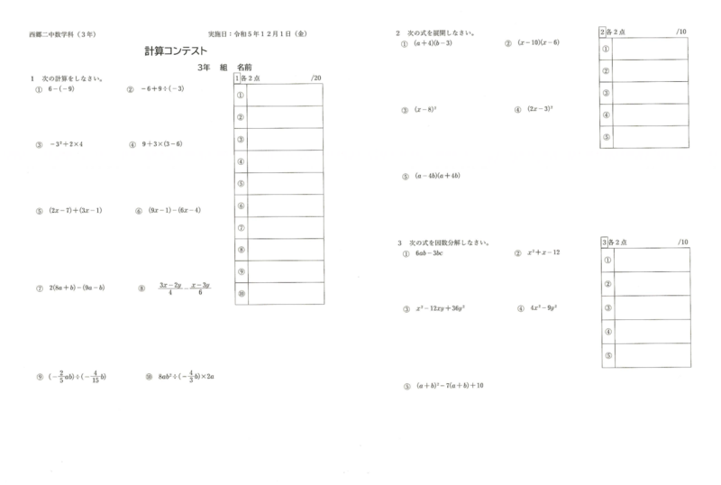 合格を目指して朝自習や数学の時間、家庭学習の課題として練習をしてきました。
