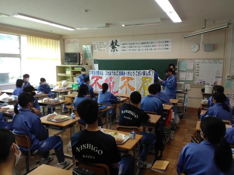 来週行われる県南中体連で3年生の健闘を願い、1・2年生から応援のメッセージが送られました。