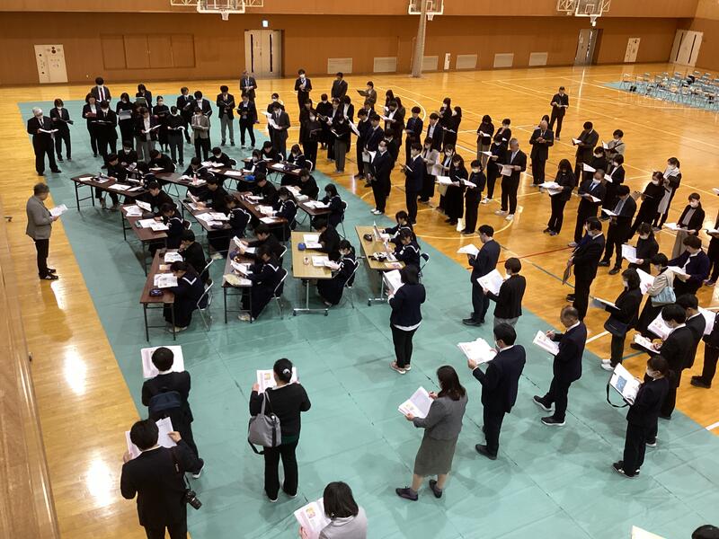 各部活ごとに選手紹介や抱負を発表し、最後に応援団のエールを中心として全校で激励しました。今日の応援団のエールはいつにも増して声が響き渡り、3年生から後輩達への思いがひしひしと伝わるものでした。